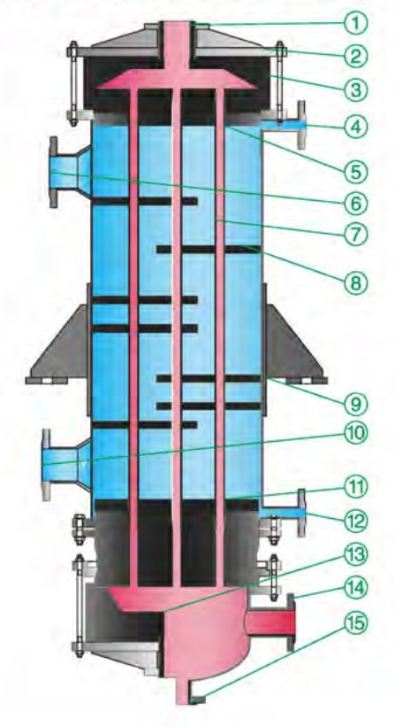 该设备结构简单、体积小巧且耐流体,因此可以进行大规模生产。但与块孔式设备相比,其耐温耐压性能较差。它适用于低振动、无冲击的环境,最适合用作冷却装置(冷凝器)。该设备分为两种类型:I 型和 II 型。II 型配备有气液分离器,而 I 型则没有。II 型最适合用作冷凝器。