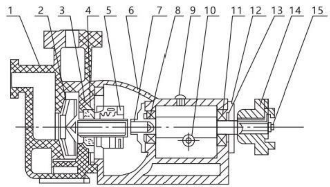 FPZ耐腐蚀自吸泵采用增强聚丙烯(RPP)一次性注塑成型工艺制造,具有高机械强度、优异的耐腐蚀性和独特的结构设计。泵腔内部包含吸入室、储液室、回流止回阀室、气液分离室和回流口。首次启动前,只需一次性注满液体,后续运行无需重复注水。吸入管路上安装有潜水阀。运行过程中,机械密封无需额外冷却水。该泵操作简便安全,零泄漏。它是潜水泵的理想替代品,适用于输送各种腐蚀性介质,工作温度范围为14℃至80℃(RPP材质)。