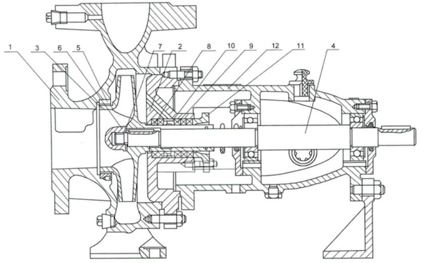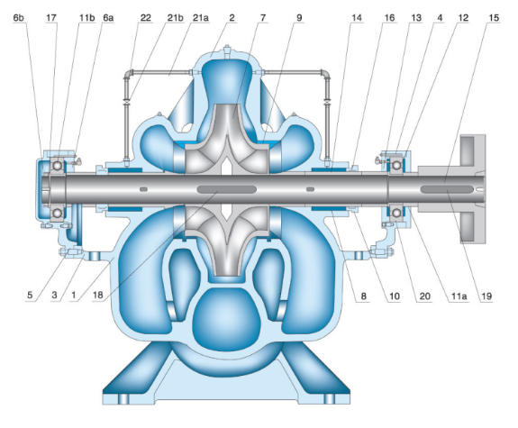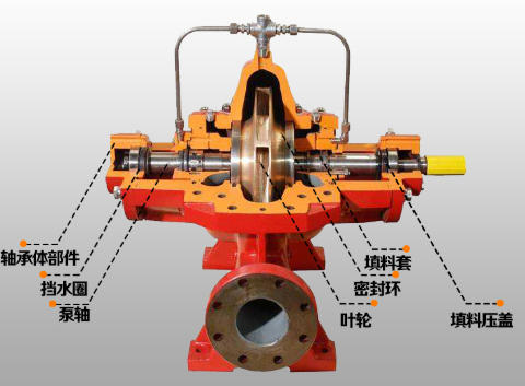 - **单吸泵**:液体从一侧进入叶轮;结构简单但容易产生轴向推力。